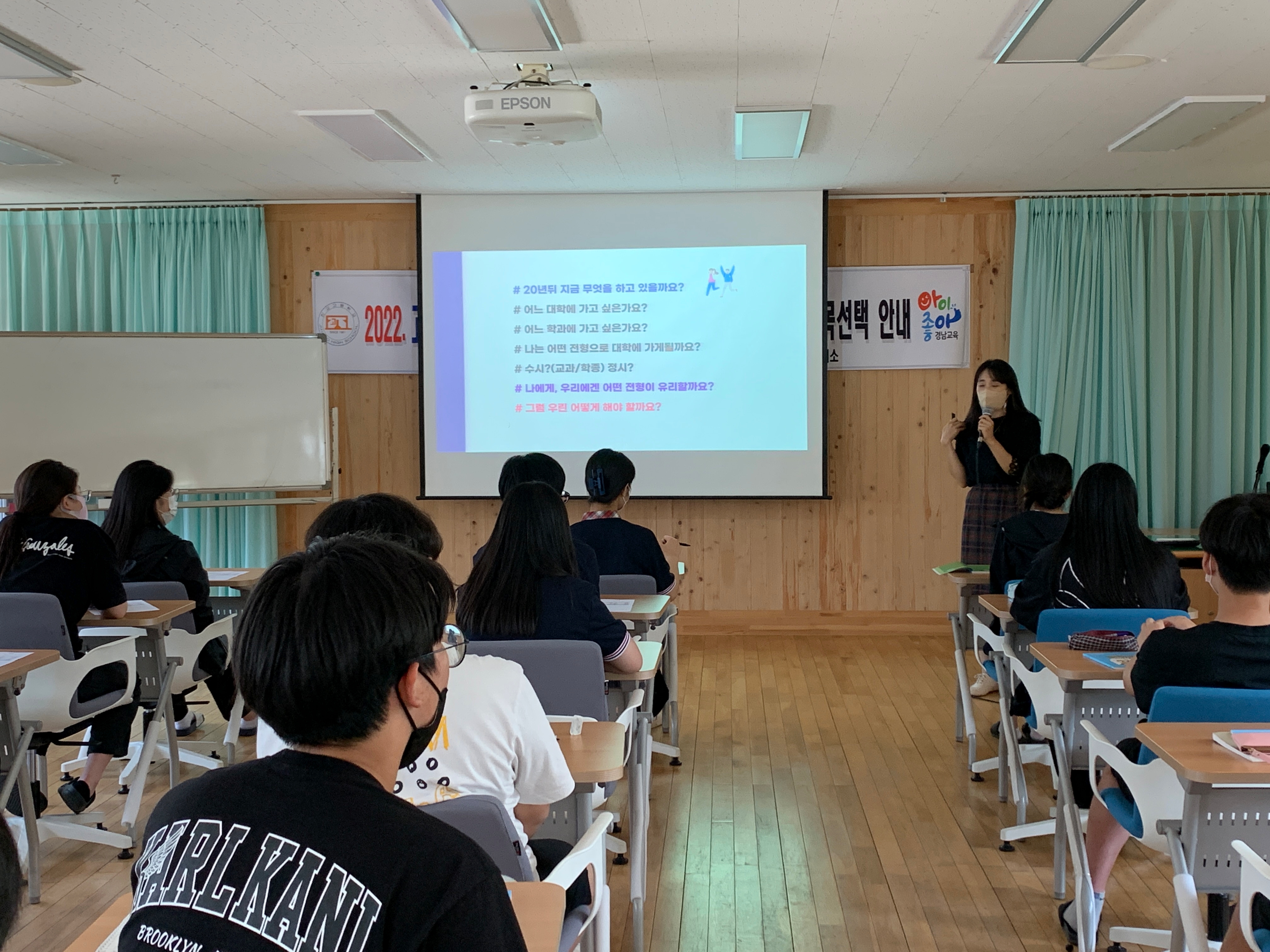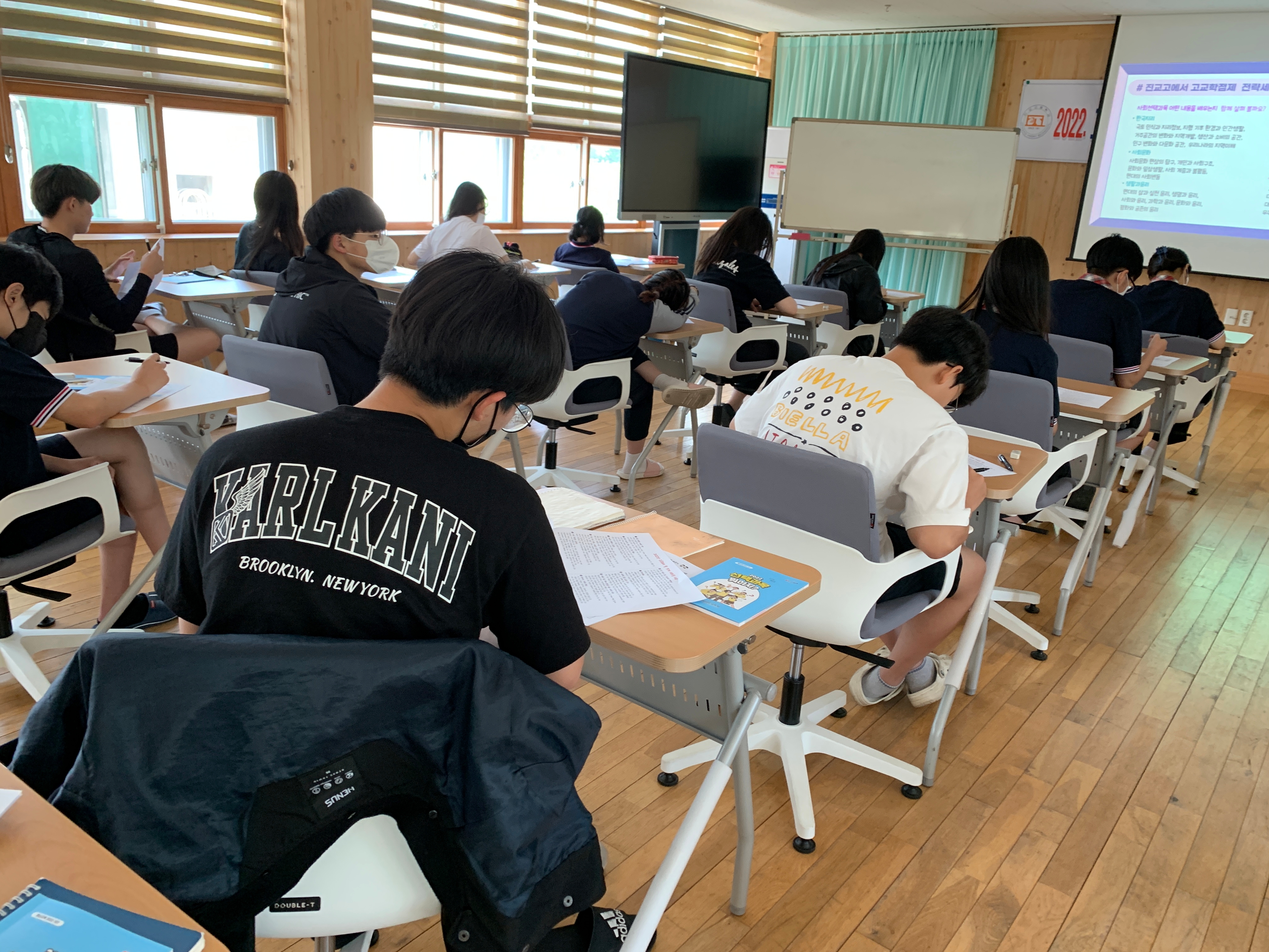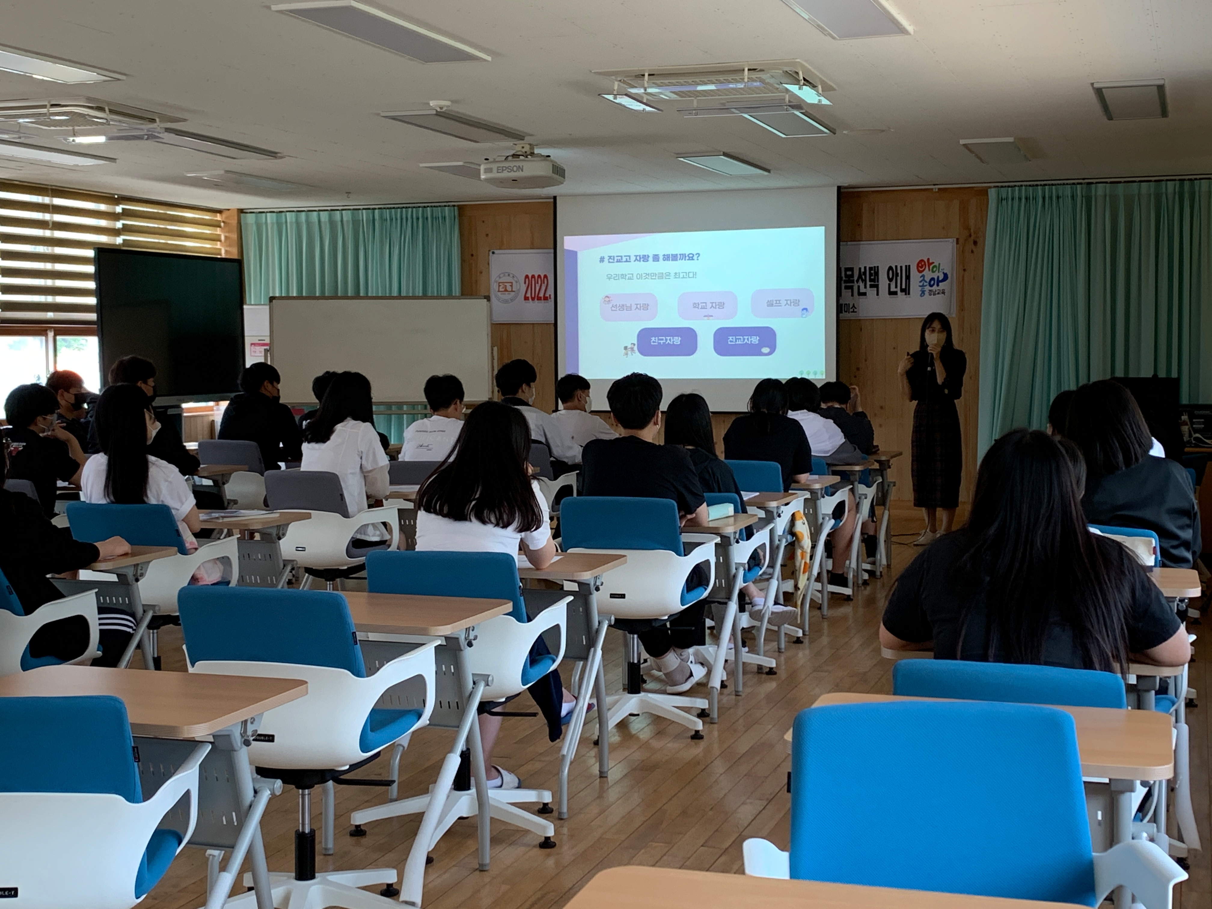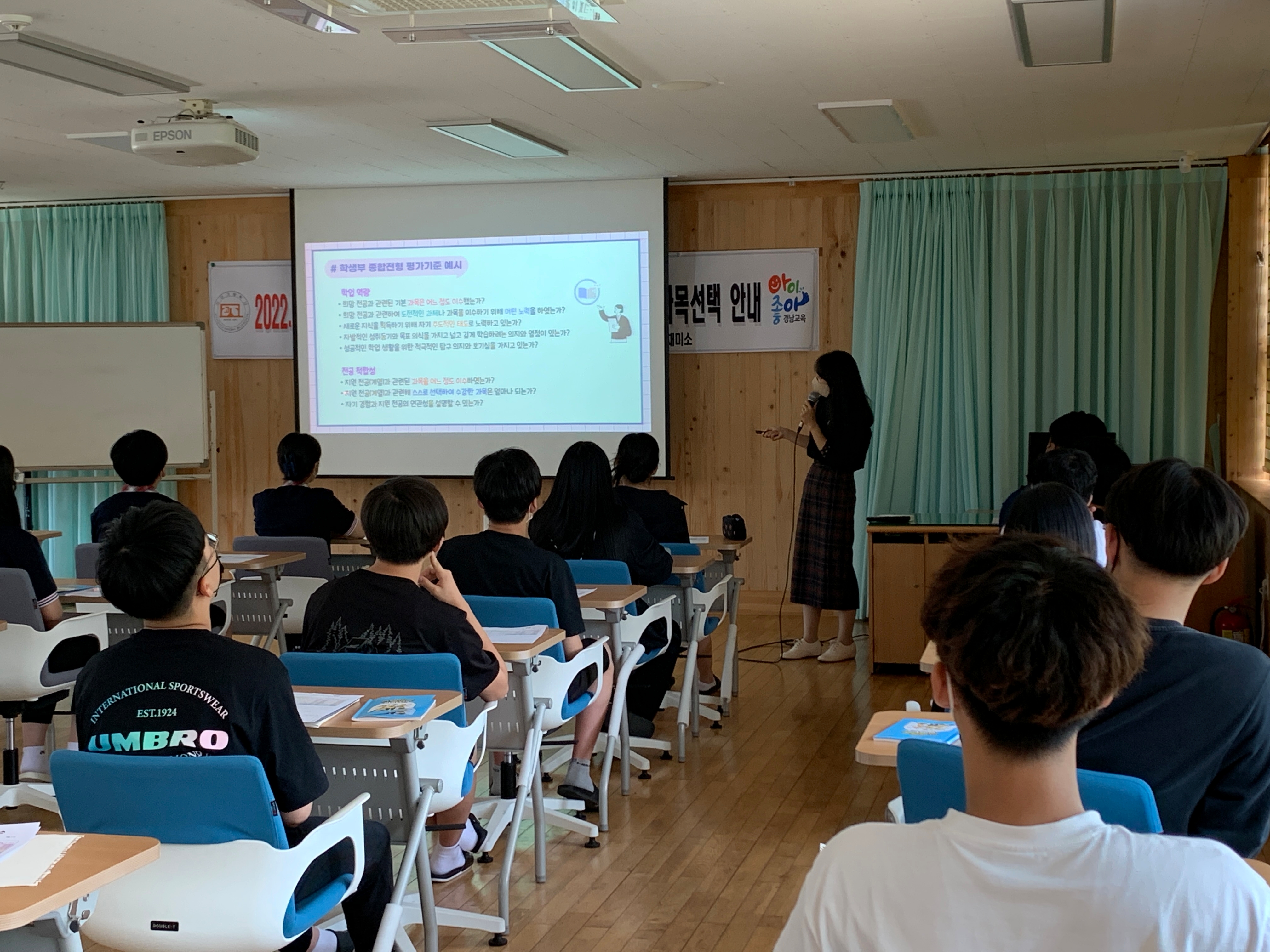 6월 16일 (목) 본교 민다리 꿈터에서 2022. 고교학점제 대비 학생선택형 교육과정 운영을 위한 학생 과목 선택 안내 강연이 개최되었습니다. 행사 사진을 첨부합니다.