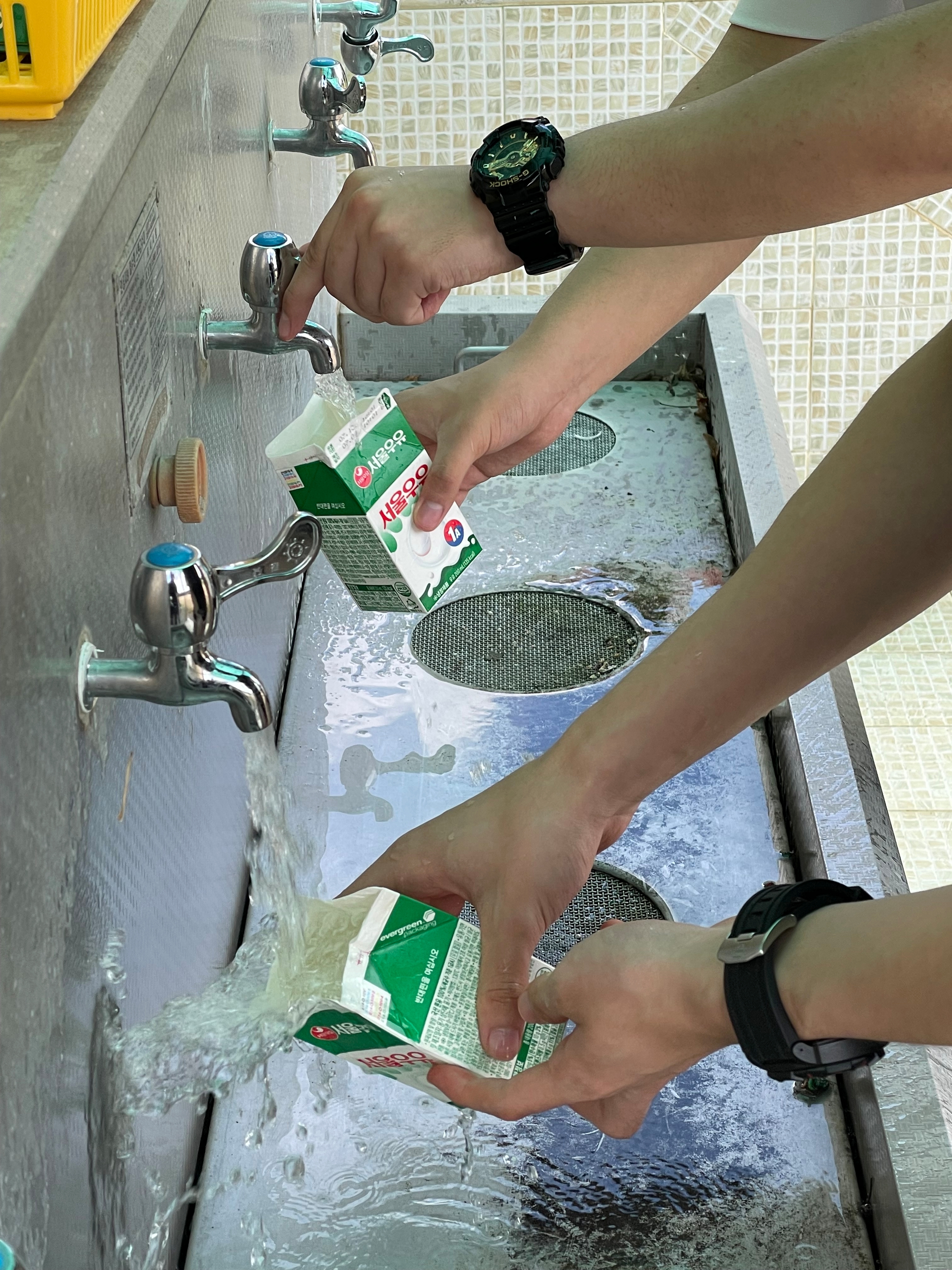 진행 과정: 1. 우유팩을 씻습니다.