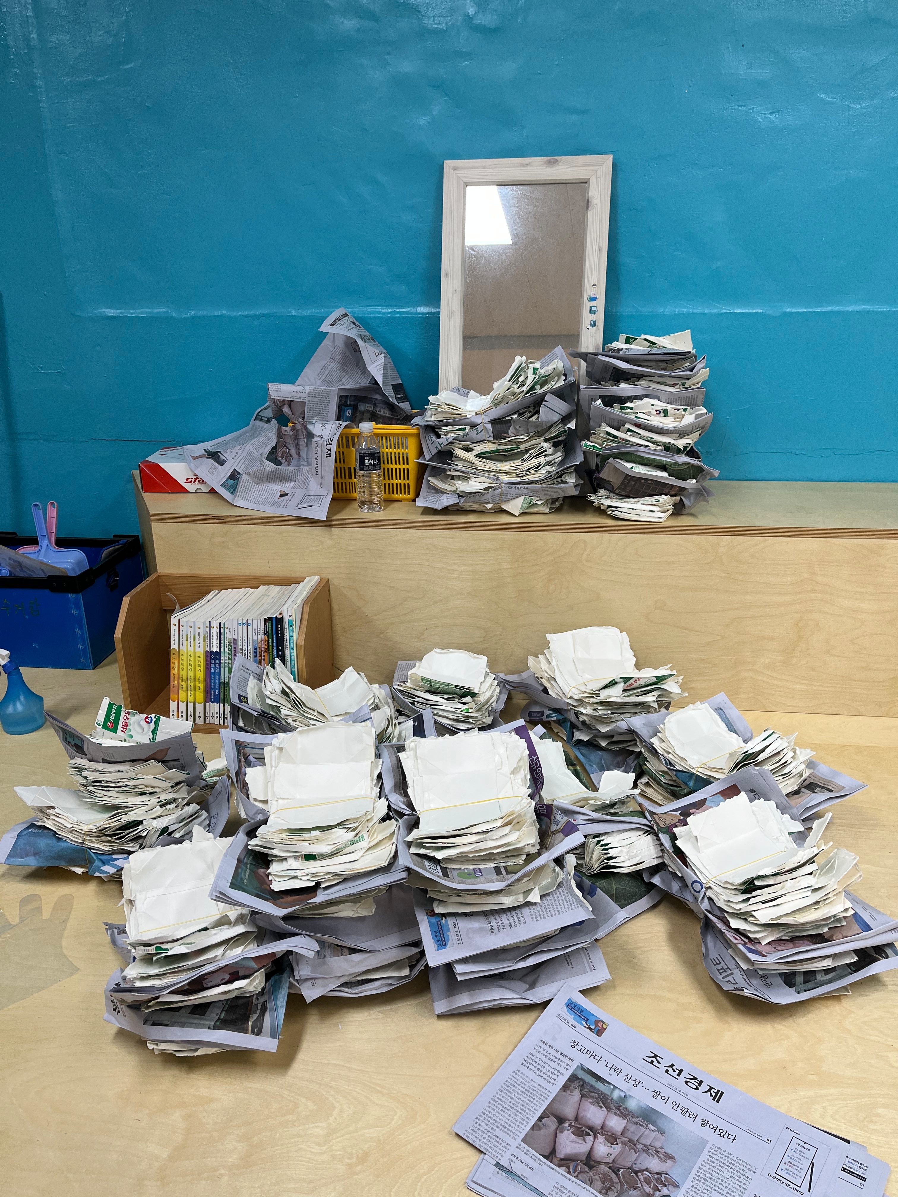 5. 우유팩 수거함이 꽉 차면, 다시 밖으로 꺼내어 30개씩 묶어 정리합니다.