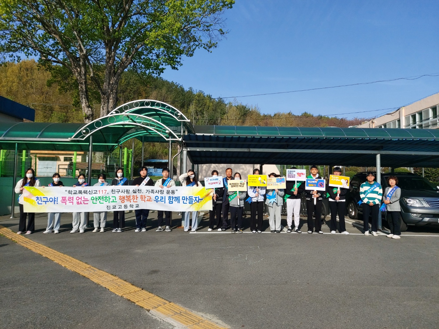 1. 행사 기간 : 2023.04.10(월)~04.14(금) 2. 주요행사 내용 가. 캠페인 활동 1) 일시: 2023.4.10.(월) 8:10-8:40 2) 내용: 학교폭력예방 현수막 및 피켓을 이용한 캠페인 활동 3) 장소: 교문 및 현관 입구 4) 주최: 전교학생회 나. 서약서 작성 1) 일시 : 2023.4.10.(월) 1교시 2) 내용 : 학교폭력예방 다짐 서약서 작성 및 낭독 3) 장소 : 각반 교실 4) 방법 : 학생회장이 방송으로 서약서 낭독 다. 학교폭력 및 범죄 예방 교실 운영 1) 일시: 2023.4.5.(수) 5교시 2) 대상: 1,2,3학년 및 교직원 3) 장소: 이명관(체육관) 4) 내용 - 학교폭력 유형, 처벌, 대응요령, 신고방법 등 안내 - 최근 증가하는 청소년 범죄유형 중심 특별예방 교육 ?자전거·무인점포 절도 ?PM(개인형 이동장치) 무면허운전 ?사이버 도박 ?마약류 (펜타닐 등) 남용 등 5) 강사: 학교전담경찰관(경사 이현준/경장 박수진) 라. 친구에게 편지 쓰기 1) 일시: 2023.4.10.(월)~4.14(금) 2) 대상: 전학년 3) 내용: 마음을 담은 편지 주고 받기