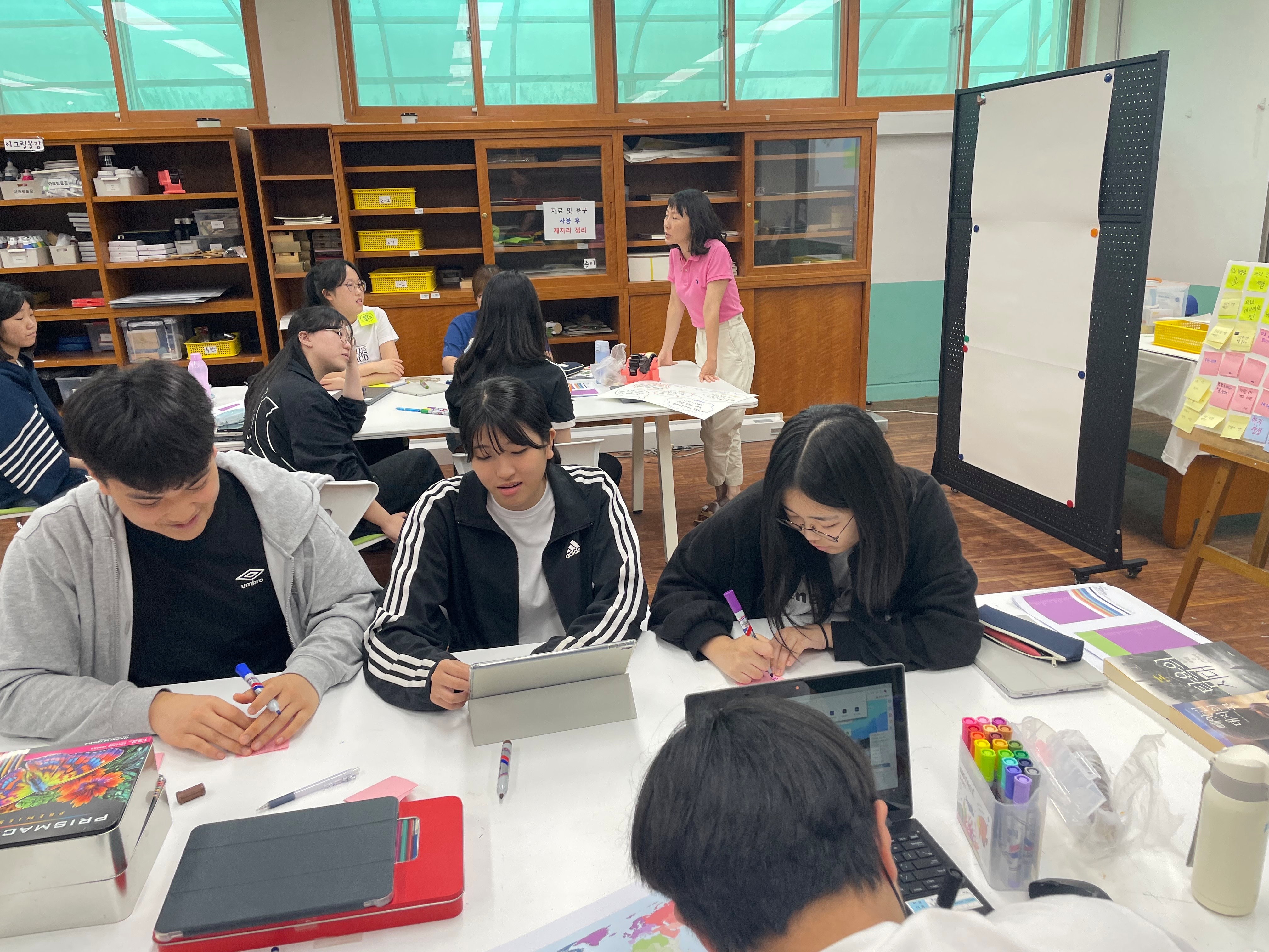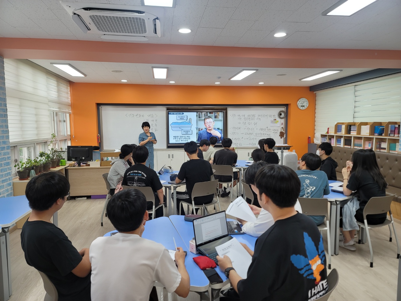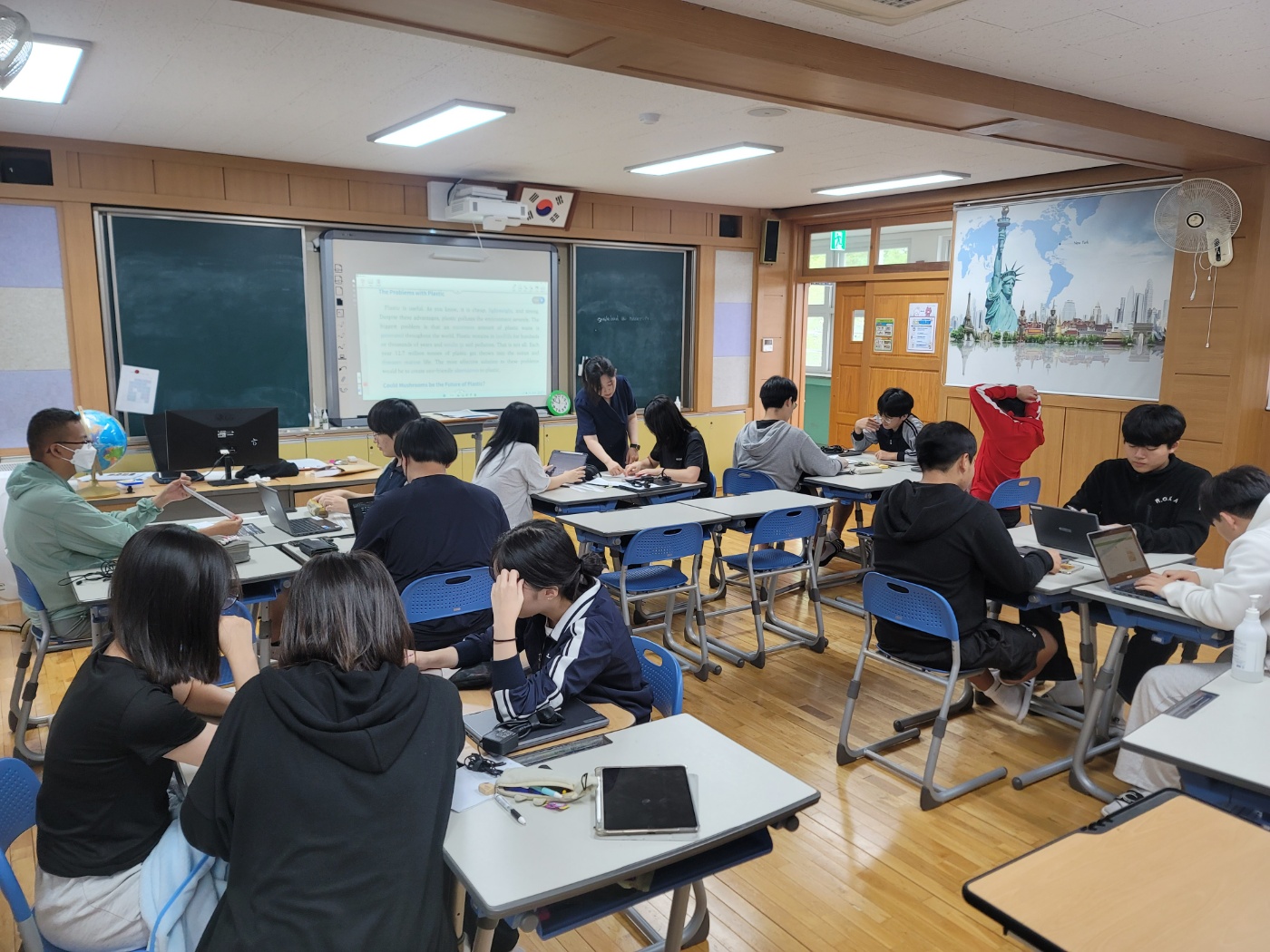 2025학년도에 전면 시행되는 고교학점제 학생 역량 강화의 일환으로 2023년 7월 13일, 14일 양일간‘수업량 유연화의 날’을 운영하였습니다.‘지속가능발전 목표(SDGs)’를 대주제로 건강과 웰빙(영어, 체육, 영양), 기후 변화와 대응(지리, 국어, 기술?가정), 기아종식과 빈곤퇴치(수학, 화학, 미술), 성평등과 인권(국어, 보건, 특수), 해양생태계 보존과 육상생태계 보호(생명과학, 수학, 영어)를 설정하여 교과 융합 프로젝트형 수업을 펼쳤습니다. 전교생은 자신의 적성 및 관심 분야에 따라 주제를 선택하여 적극적으로 수업에 참여하였습니다. 주어진 과제를 해결하면서 교과별 핵심 역량뿐만 아니라 창의 융합 능력 및 문제해결 능력을 신장시킬 수 있는 귀중한 시간이 되었습니다.