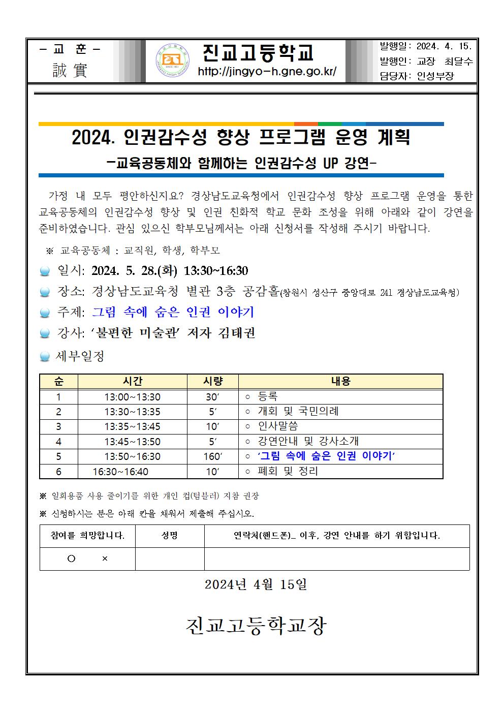 교육공동체와 함께하는 인권감수성 UP 강연 안내
