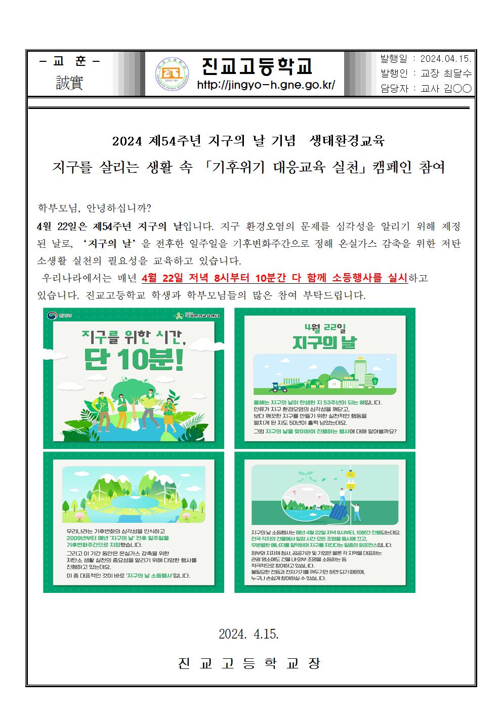 지구를 살리는 생활 속 「기후위기 대응교육 실천」캠페인 참여 안내