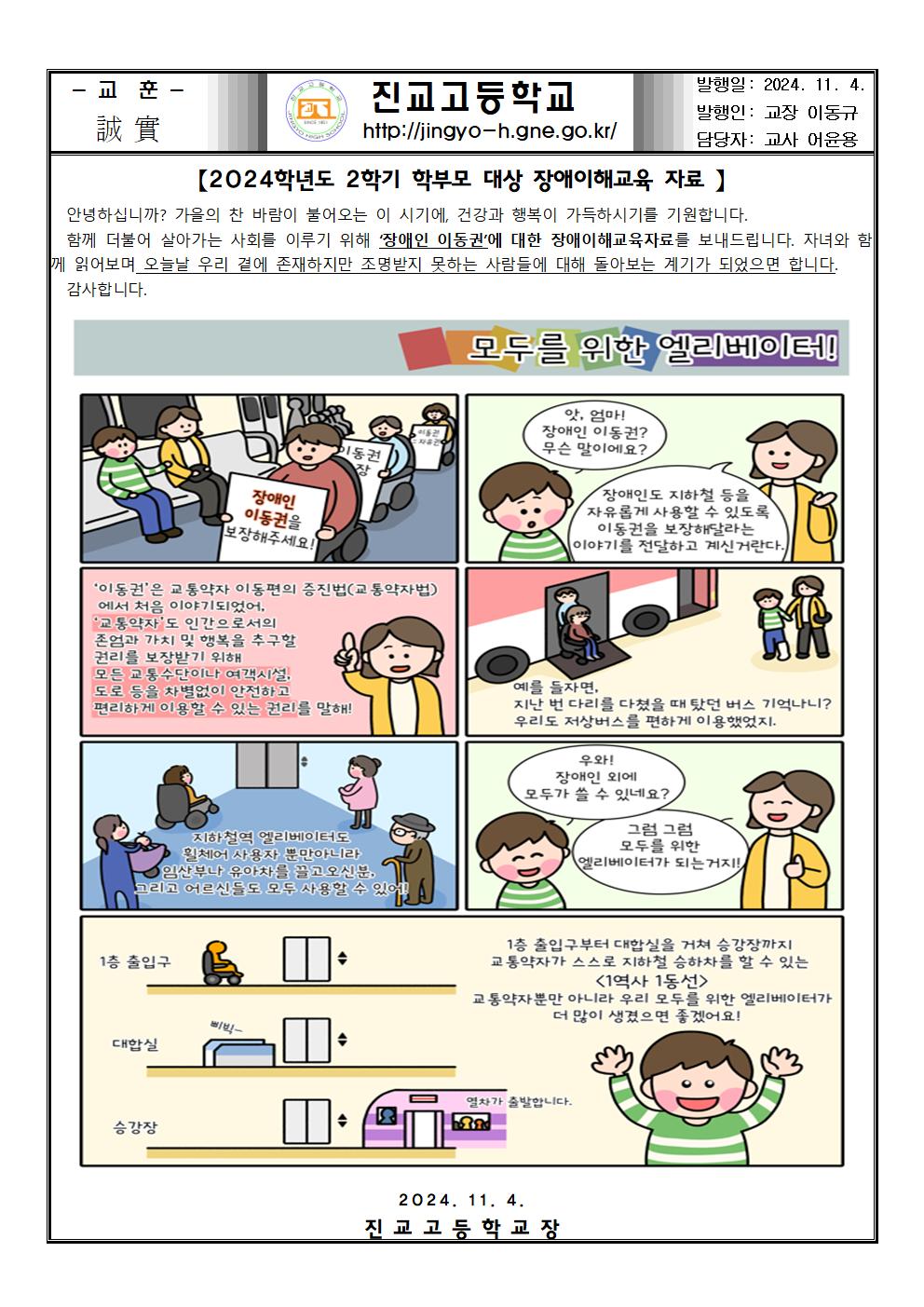 2024학년도 2학기 학부모 대상 장애이해교육 자료 안내
