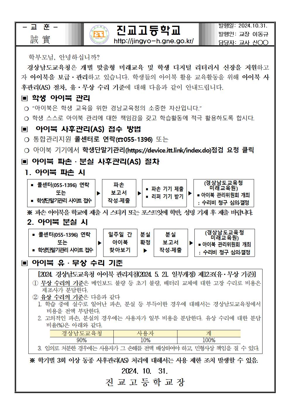 2024. 아이북 사후 관리(AS) 절차 및 유무상 수리 기준 안내